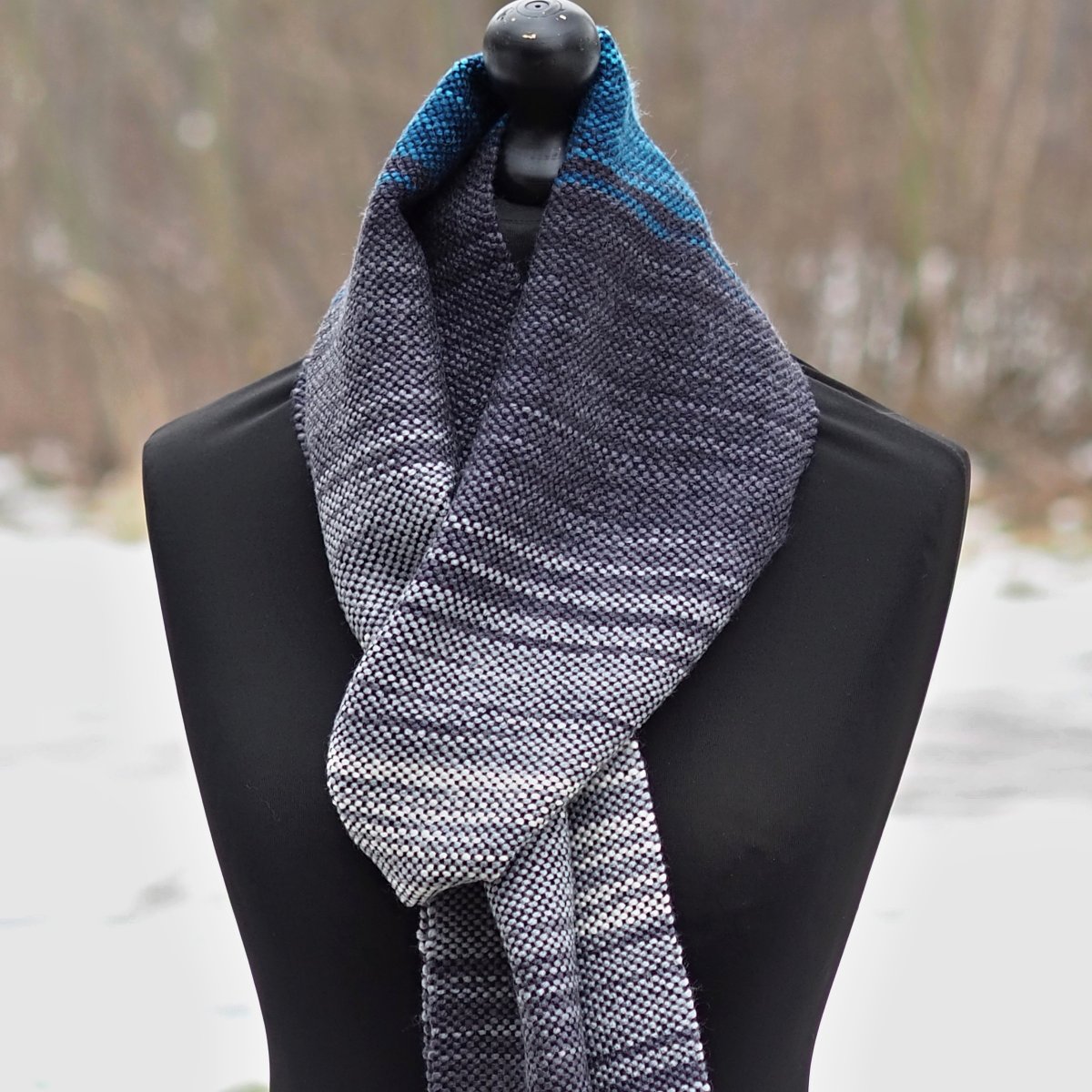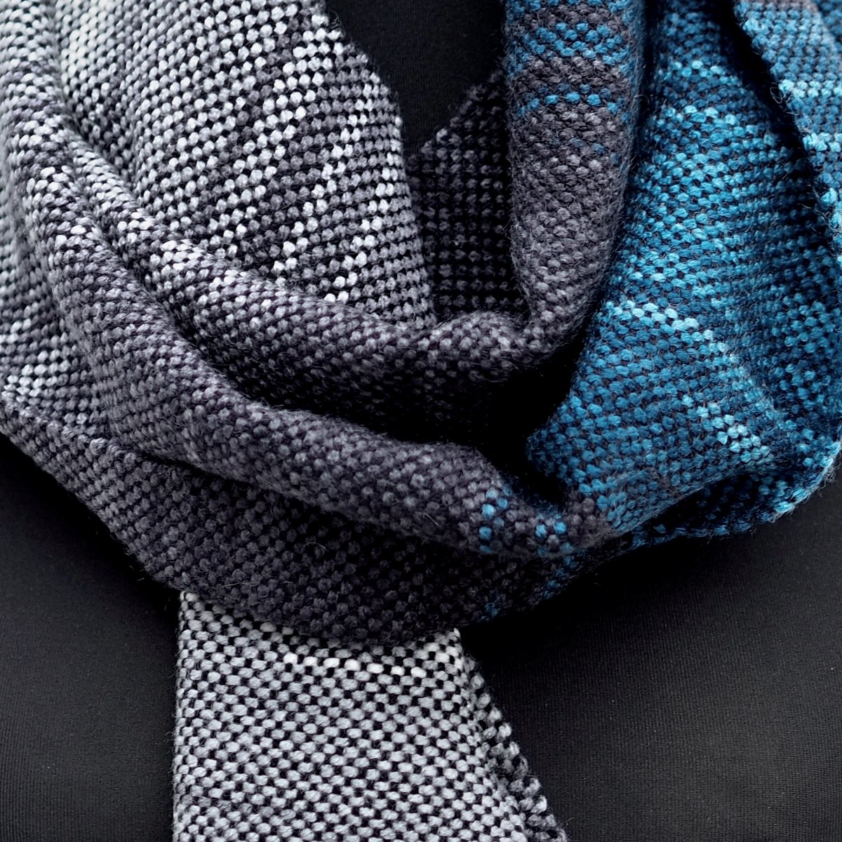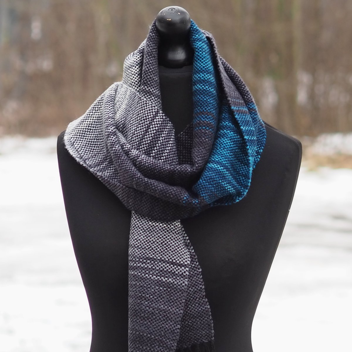 Ručně tkaná šála - ROMAN - šála je laděná do chladivých tónů - hodí se i k outdoorovému oblečení.