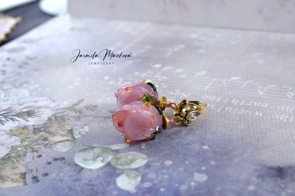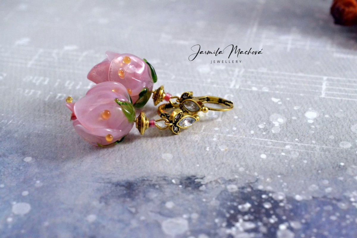 Růženka... ručně vinuté sklo ...háčky z obecného kovu...