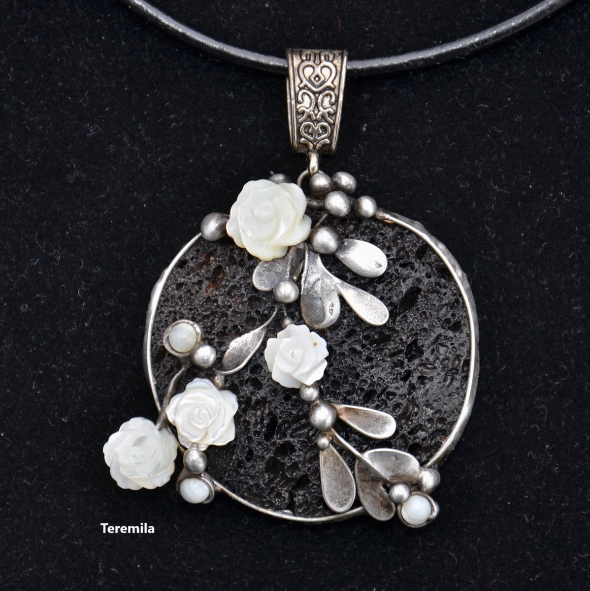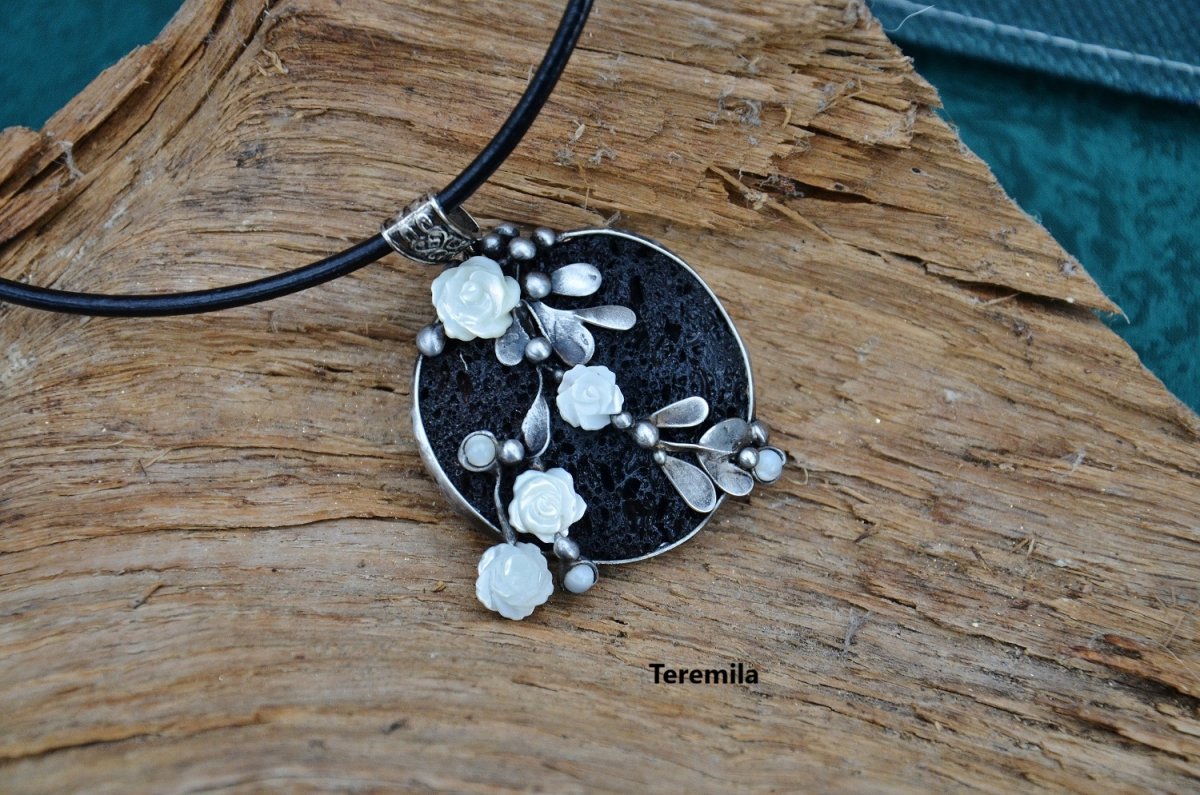 Šperk je vyroben cínováním. Tvoří jej veliký oválný velmi porézní kus lávy, zajímavý svojí strukturou, o rozměrech 4,5 x 4,5 cm.