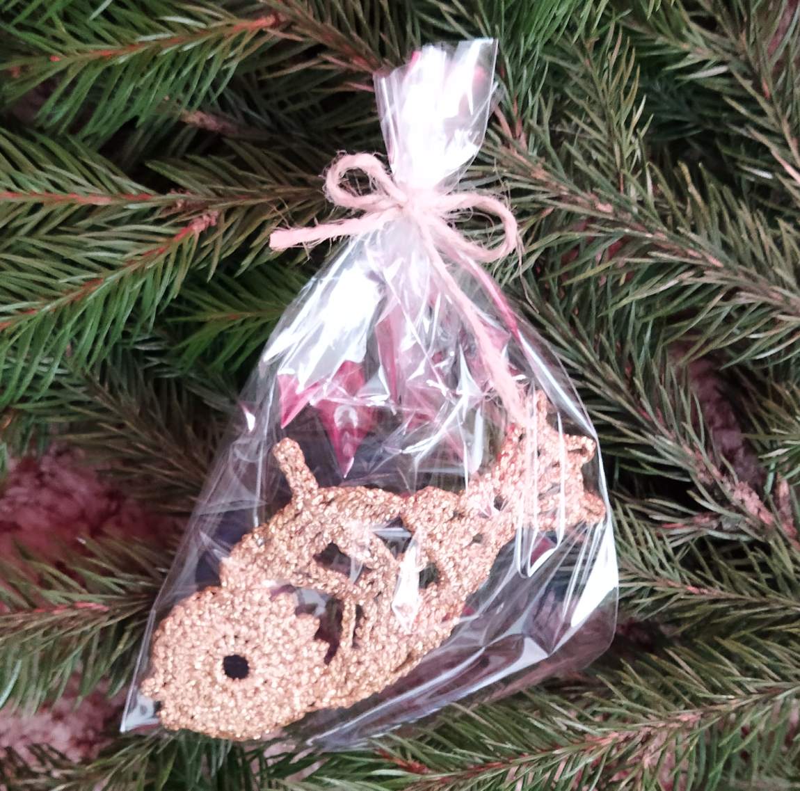 Vánoční rybka z efektní příze – ručně háčkovaná
