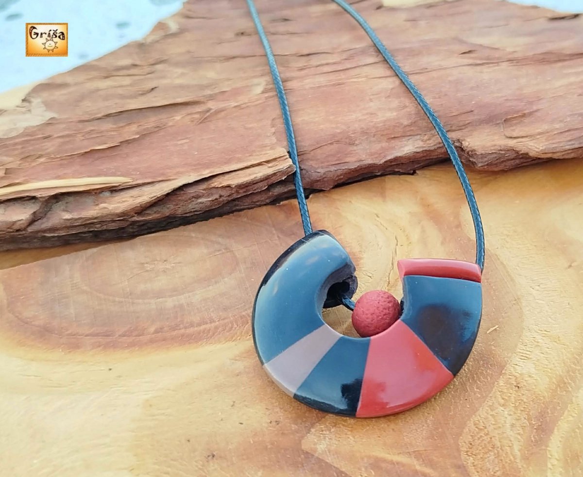 Zavěšeno na kulaté šňůrce černé barvy se zapínáním na karabinku, délka 45 cm + 6 cm prodlužovací řetízek.