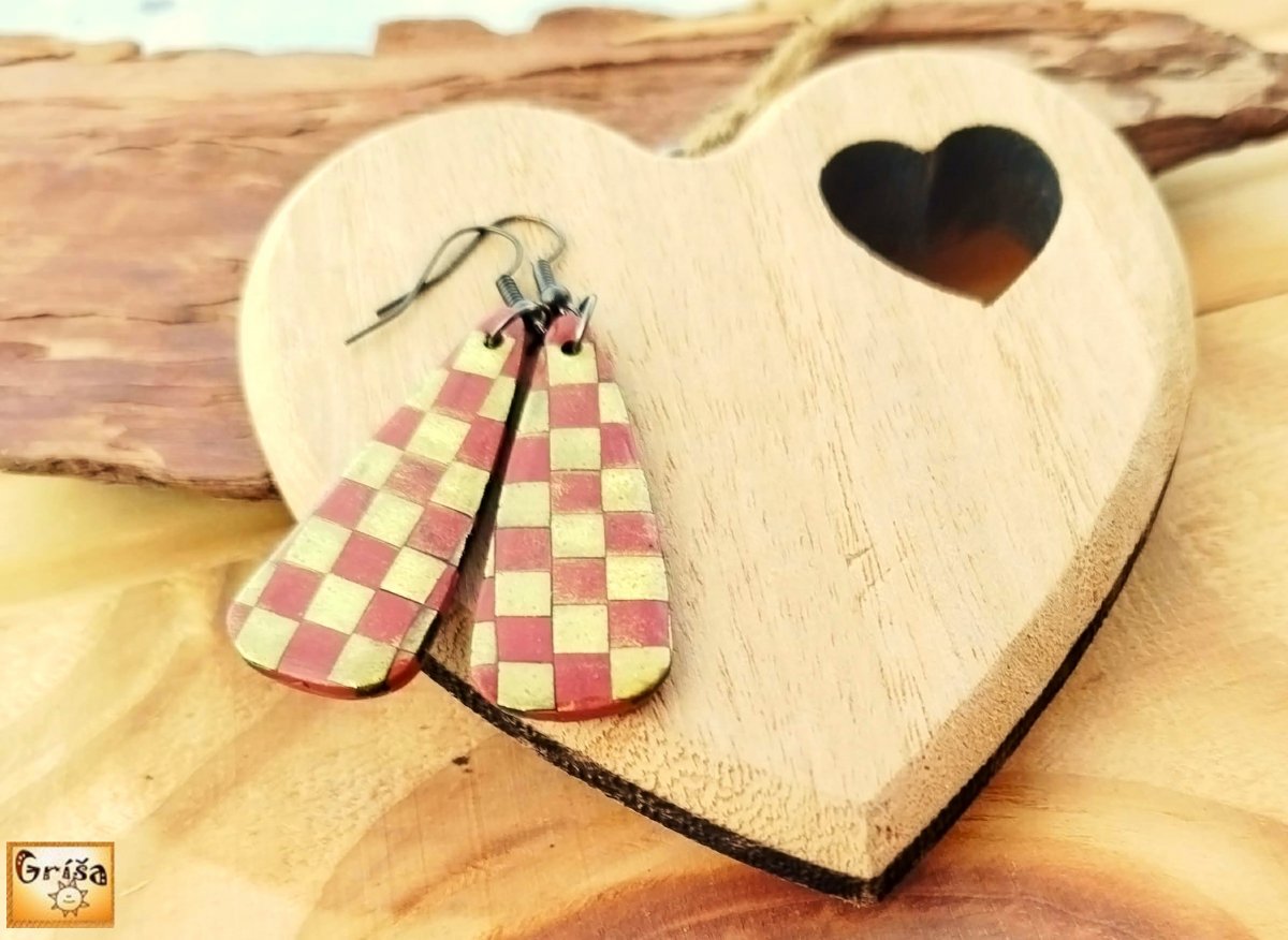 Délka visacích náušnic se šachovnicovým vzorem je 45 mm.