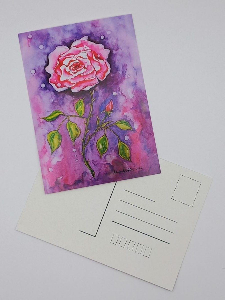 1x Pohlednici „Růže" - reprodukce originálu obrazu Růže akvarelem, pololmatný karton, rozměr 10,5 × 14,8 cm