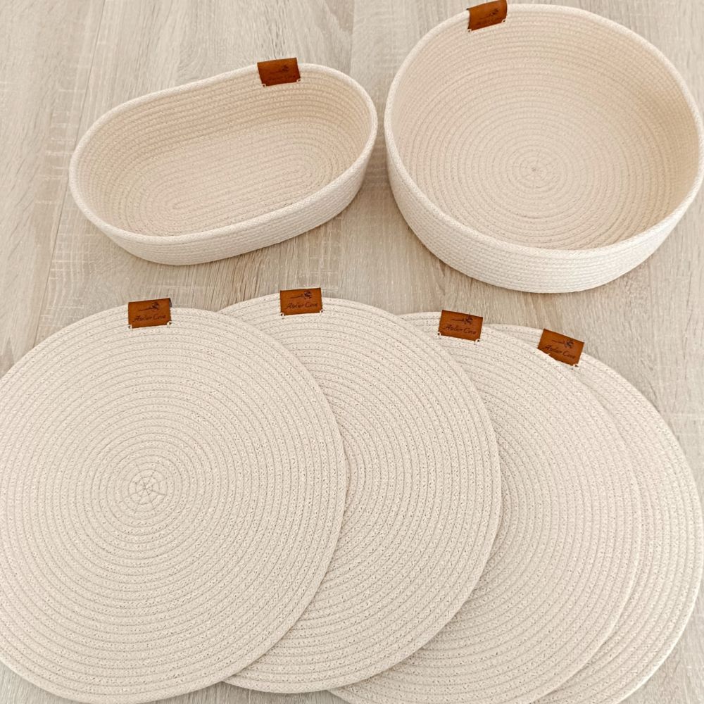 Sada je ušita z pevných šňůr, které mají vysokou pevnost a schopnost držet tvar i při častém používání. Každý kus je originál, protože je šitý ručně s důrazem na detail a kvalitu zpracování.