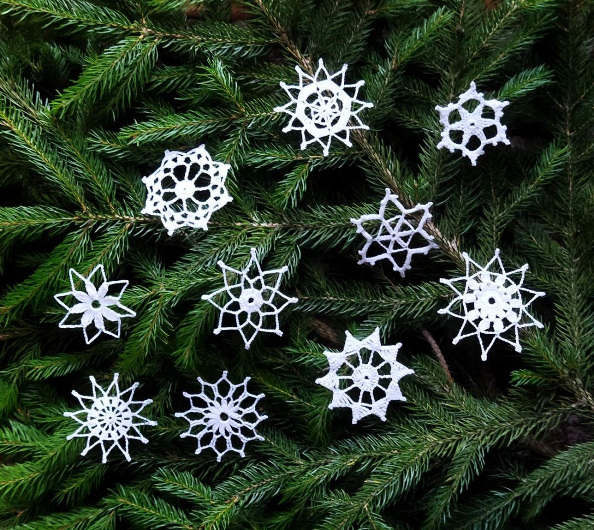 Pro snadné ladění vánoční výzdoby nabízím hotové sady vloček, ručně háčkovaných ze 100% bavlny a pečlivě naškrobených, aby krásně držely svůj tvar. Velikost vloček se pohybuje v rozmezí 5–8 cm.