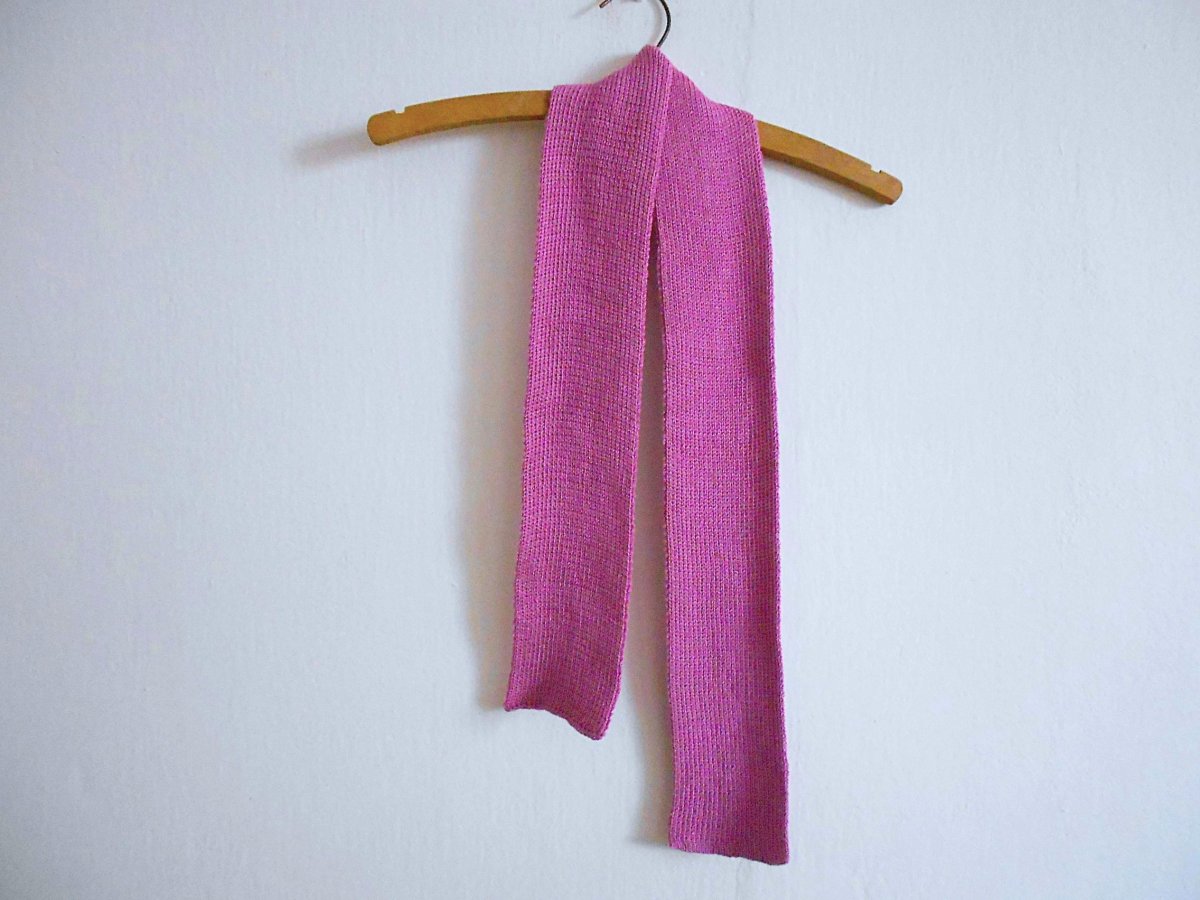 Strojově pletená, ručně dokončená, pružná šála, růžová. Velikost: délka 128cm, šířka 9cm. Doporučuji ruční praní nebo v pračce program na vlnu, sušit volně položené. Akryl.