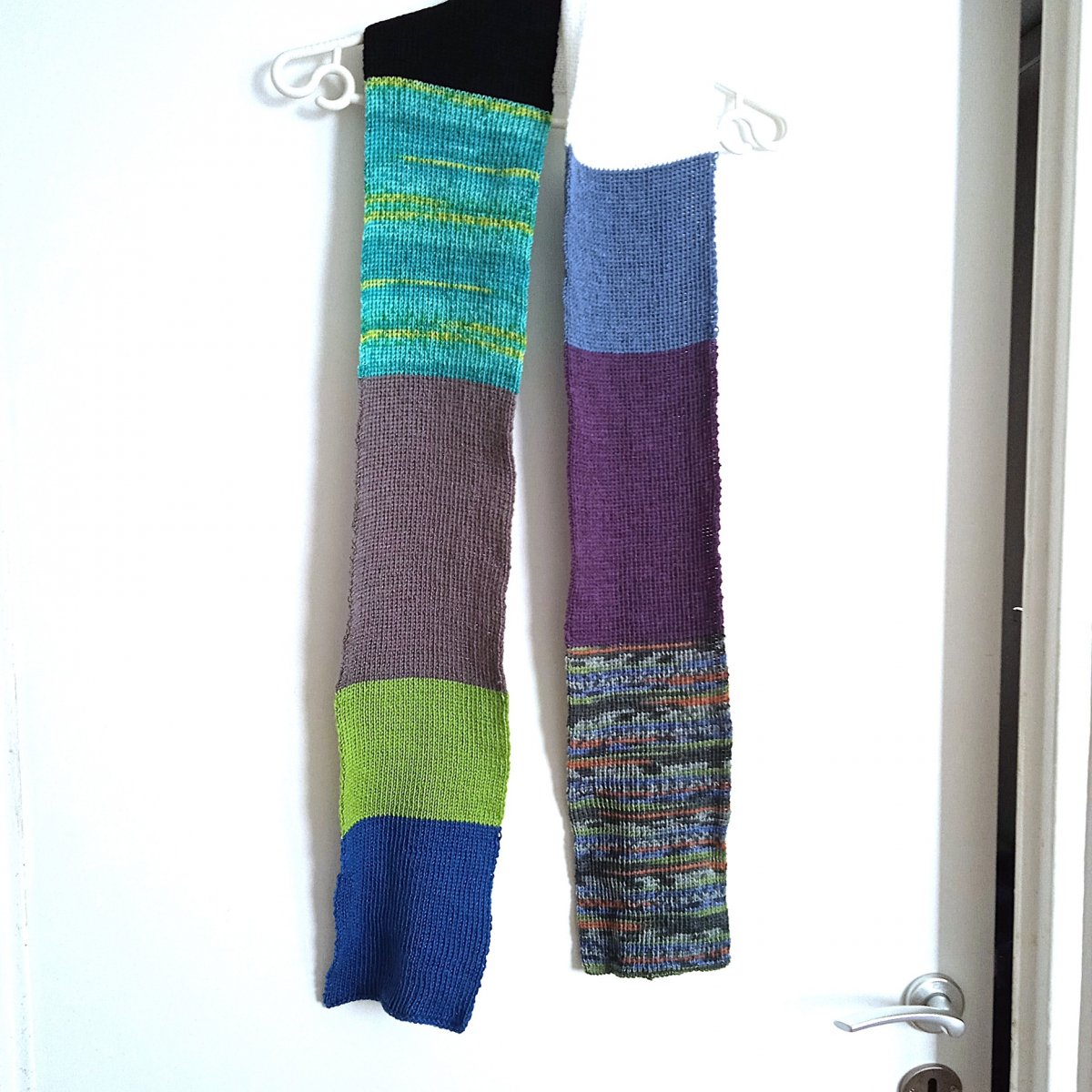 Strojově pletená, ručně dokončená, barevná, pružná, velká šála. Velikost: délka 170cm, šířka 14cm. Doporučuji ruční praní nebo v pračce program na vlnu, sušit volně položené.