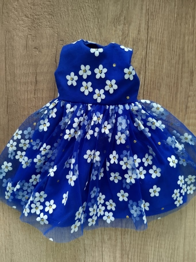 Šatičky pro panenky Paola Reina 32cm, šité z bavlněné látky a potištěného šifonu, vzadu zapínání na patentky. Mají rozměry: obvod pasu cca 15cm, přes hrudník cca 14cm, délka šatiček od ramene dolů je 19cm, od ramene k pasu 6cm, sukně od pasu dolů 13-14cm.