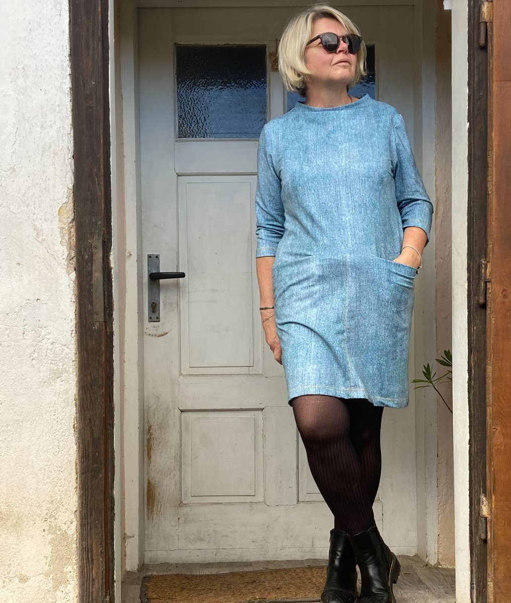 Barva: jemná modrá imitace džinsoviny – ideální pro podzimní paletu a skvěle se kombinuje s neutrálními doplňky.