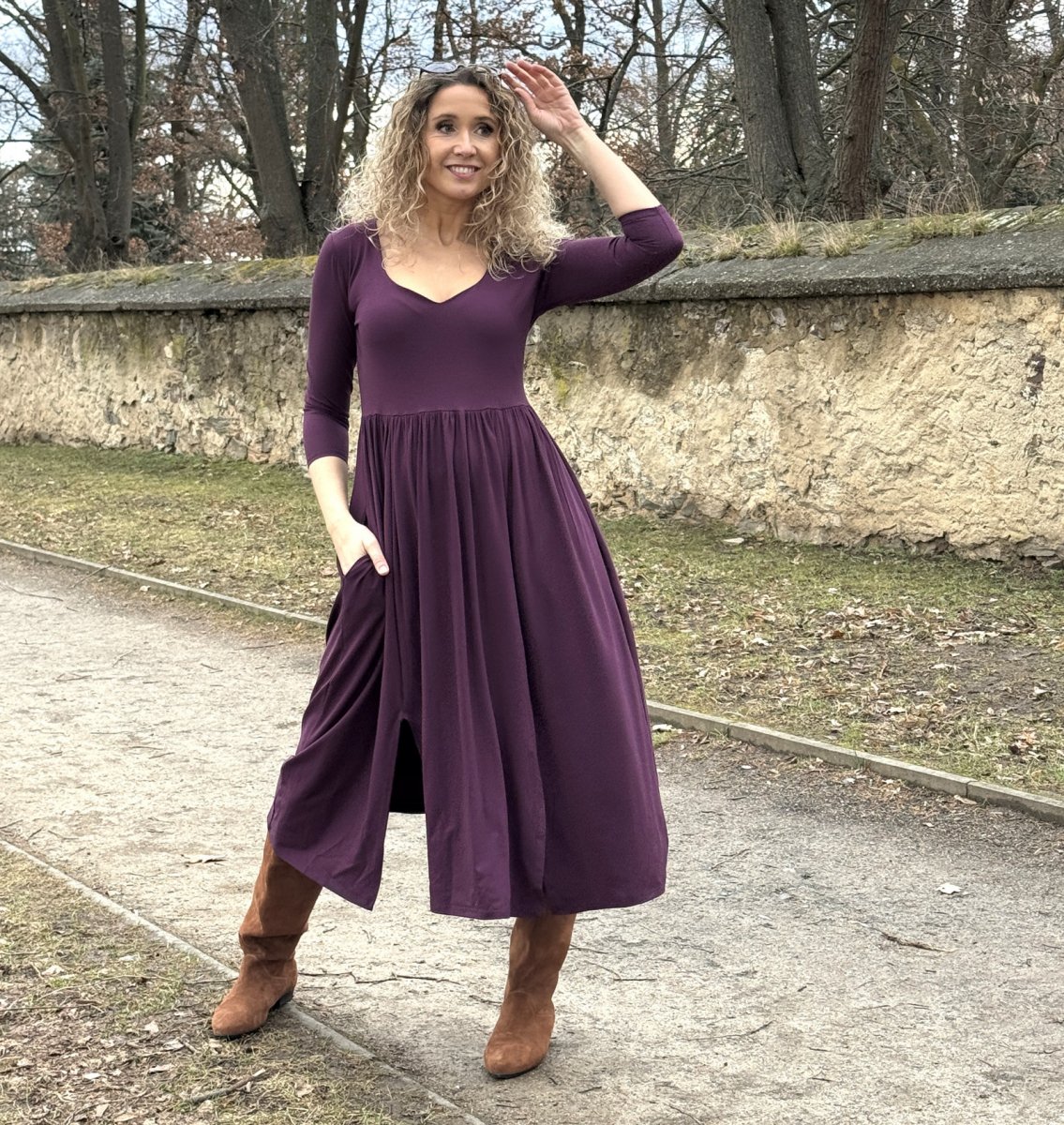 Šaty s rozparky fialové