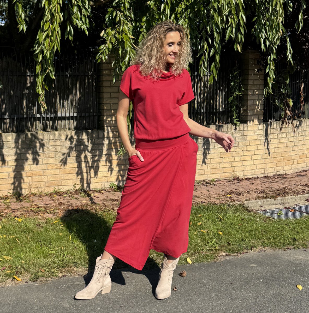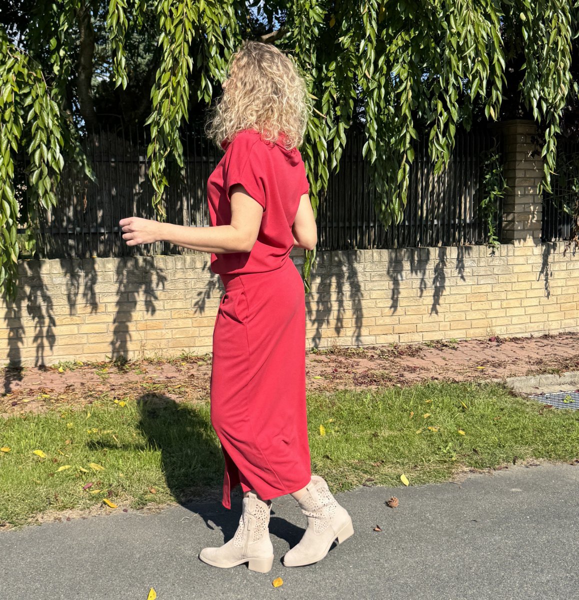 Šaty se zavinovací sukní dlouhé tmavě červené