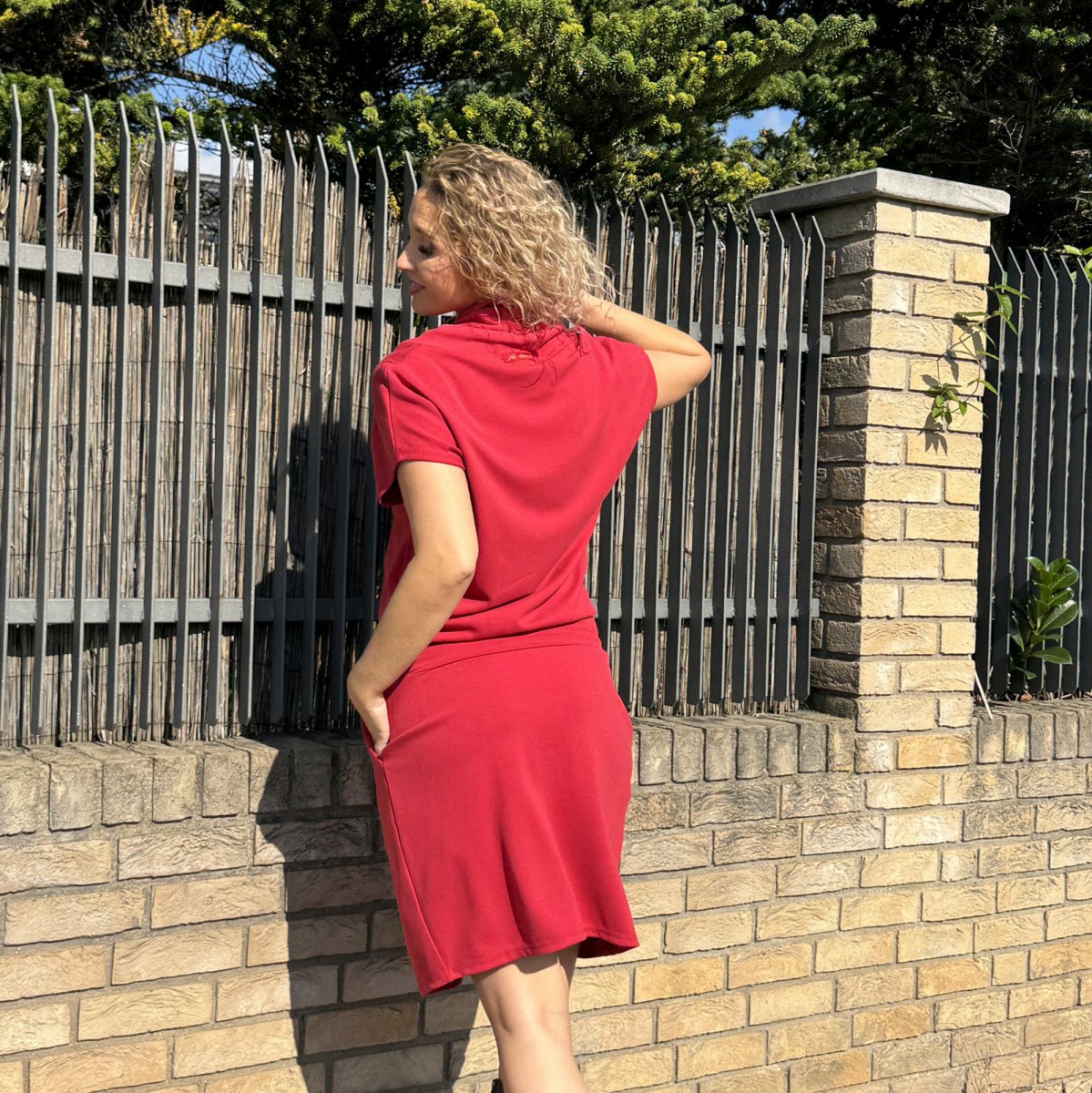 Šaty se zavinovací sukní krátké tmavě červené
