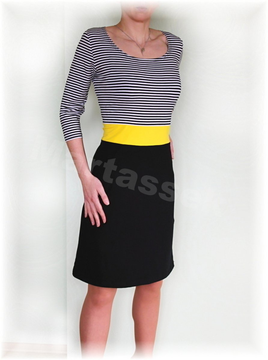 Šaty pouzdrového střihu z bavlněného elastického úpletu,přestřižení v pase(možné vybrat i jinou barvu než nafocenou žlutou-připište do objednávky),3/4 rukáv,tvar sukně do A.Klasická elegance,která jde vzít s dětmi na procházku stejně jako do práce nebo na kafe s kamarádkou:-).