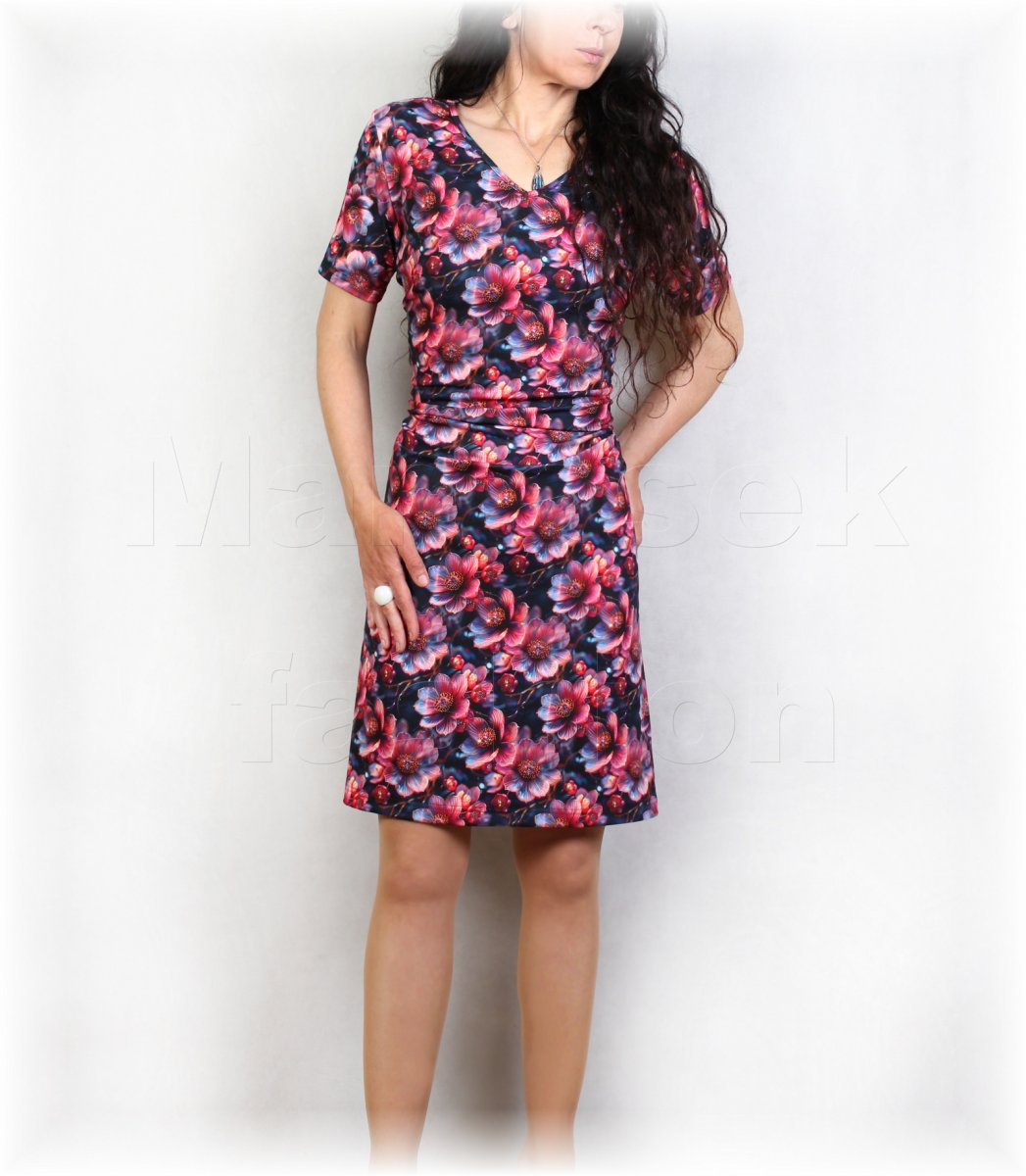 Krásný vzor. Oblíbený střih, který zakryje i nedokonalosti postavy. Mohou být i hladké bez řasení v pase, stačí připsat poznámku do objednávky. Nafoceno na výšce postavy 170cm.Pokud se vám líbí materiál a chcete šaty ušít v jiném střihu, napište.