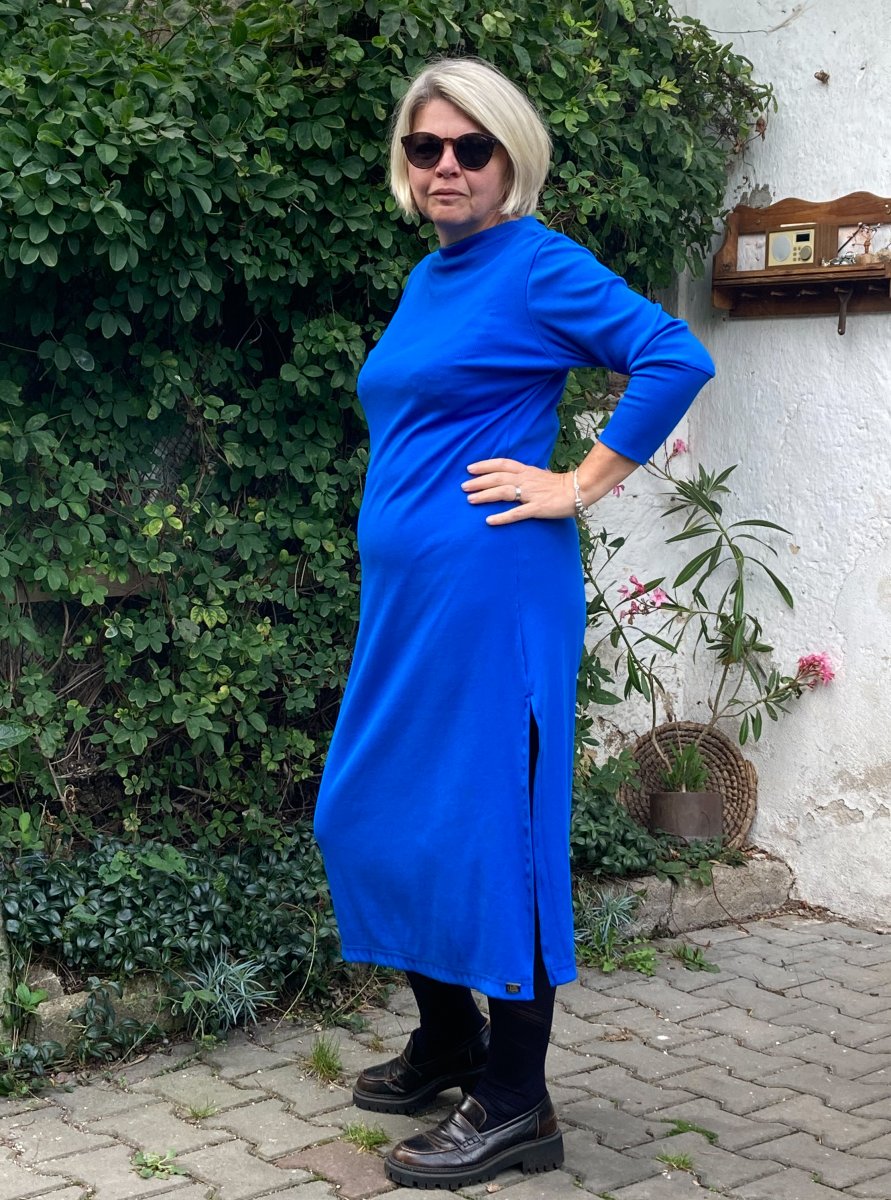 Objevte pohodlí a eleganci s těmito žebrovanými šaty v krásné modré barvě. Vyrobené z kvalitního úpletu, který zajišťuje příjemný pocit na pokožce po celý den. Dlouhý střih s rozparkem dodává šatům moderní vzhled, ideální pro každodenní nošení nebo speciální příležitosti.