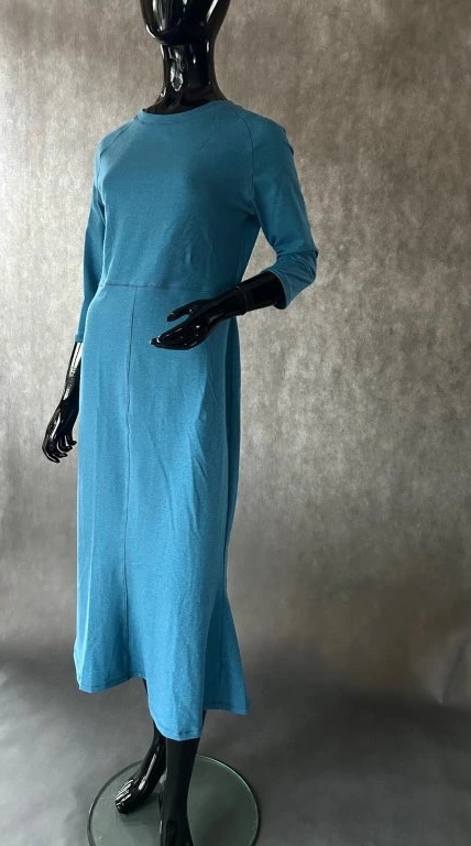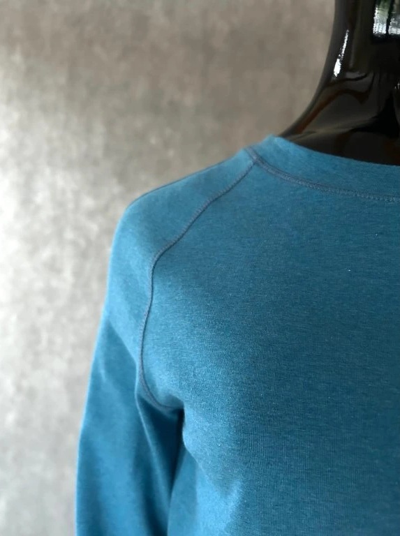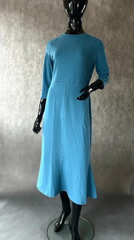Úpletové šaty s raglánovým rukávem a zvonkovou sukní, krásně obepíná siluetu a sluší nejem štíhlím, ale i plnoštíhlím, právě tím, že vytvoří dojem delší postavy.