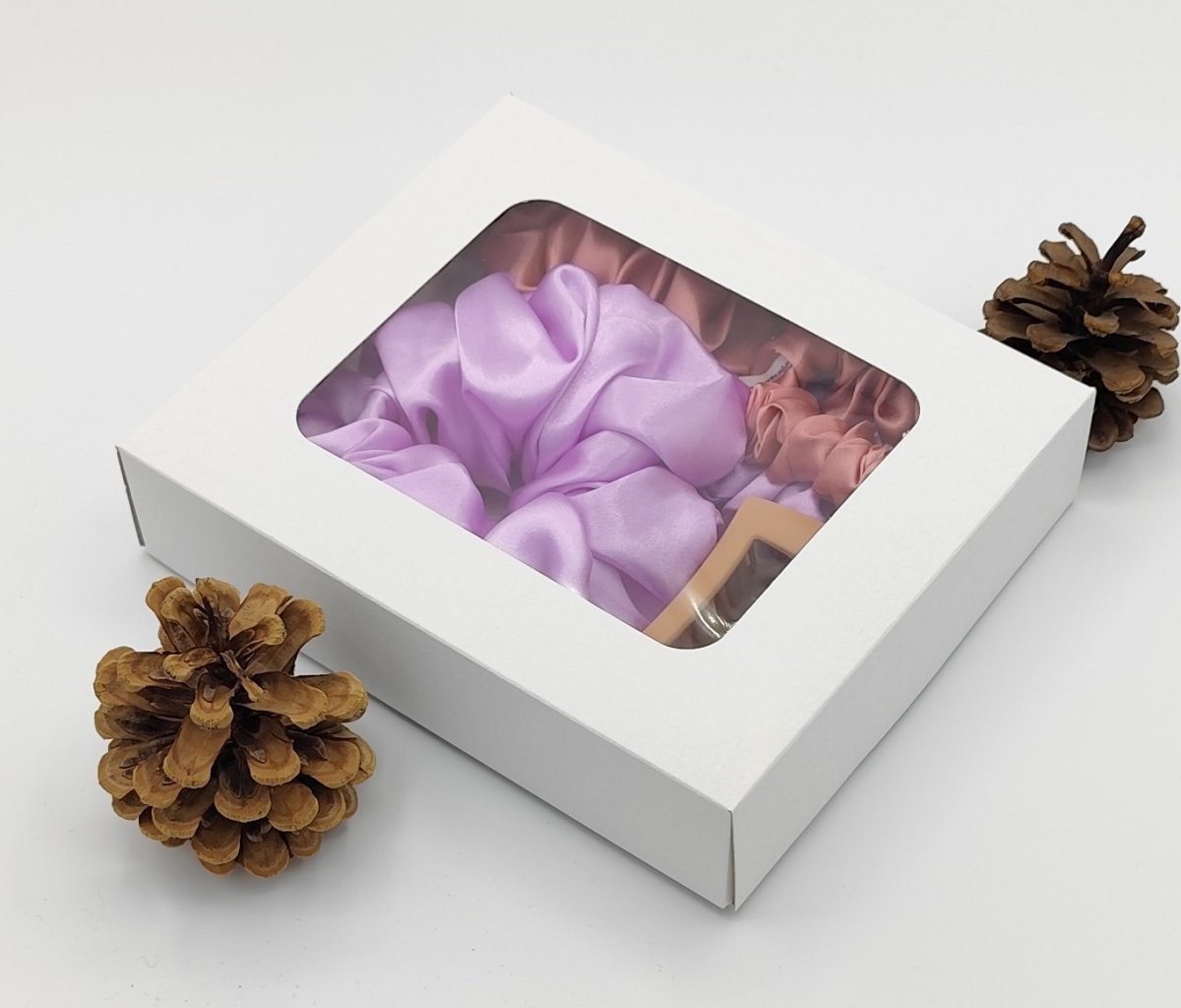 Dárková sada je nakombinovaná ve fialovo růžové a tmavě starorůžové barvě.