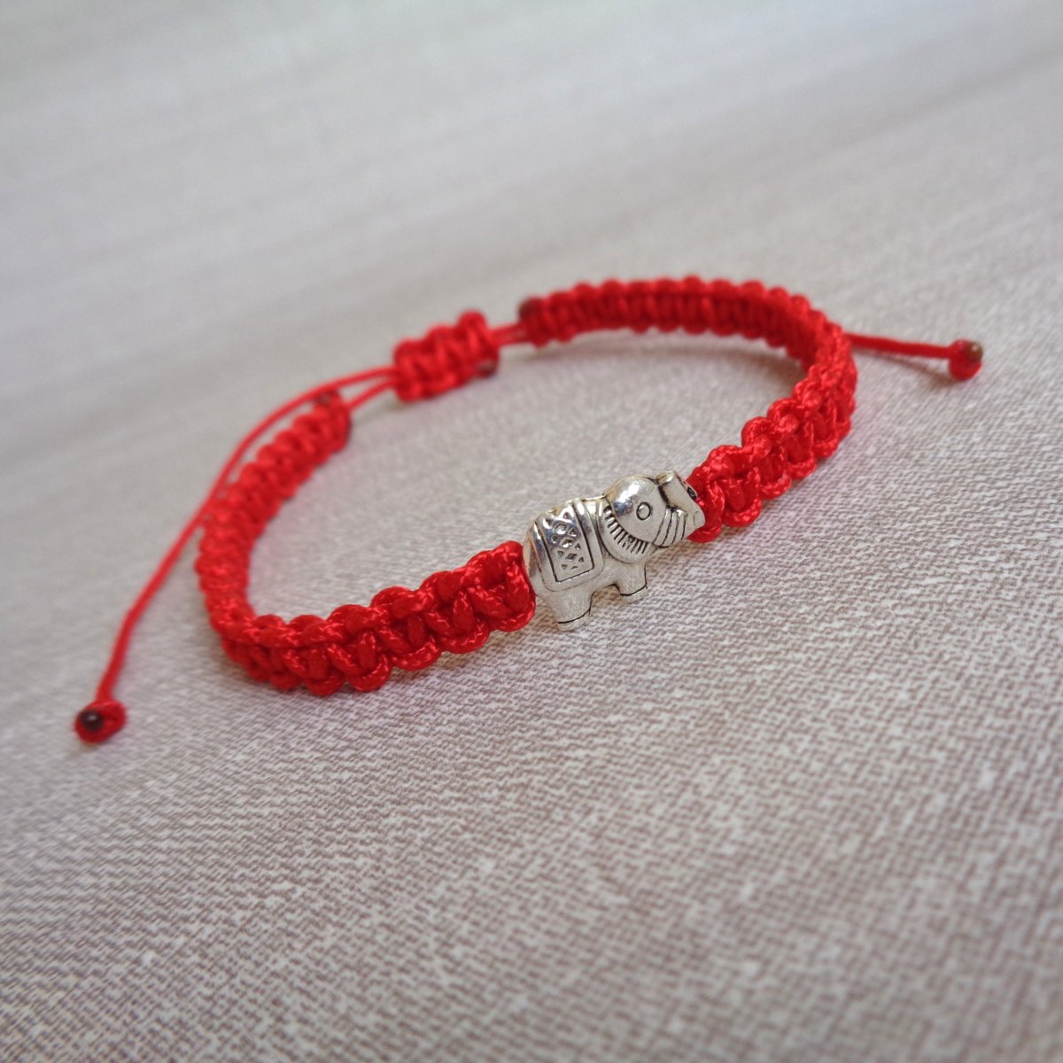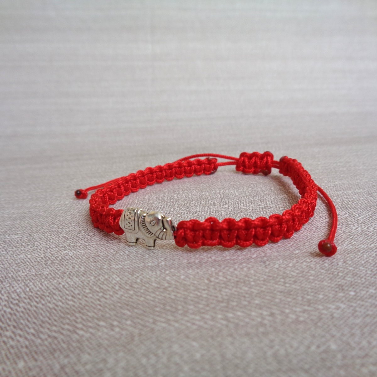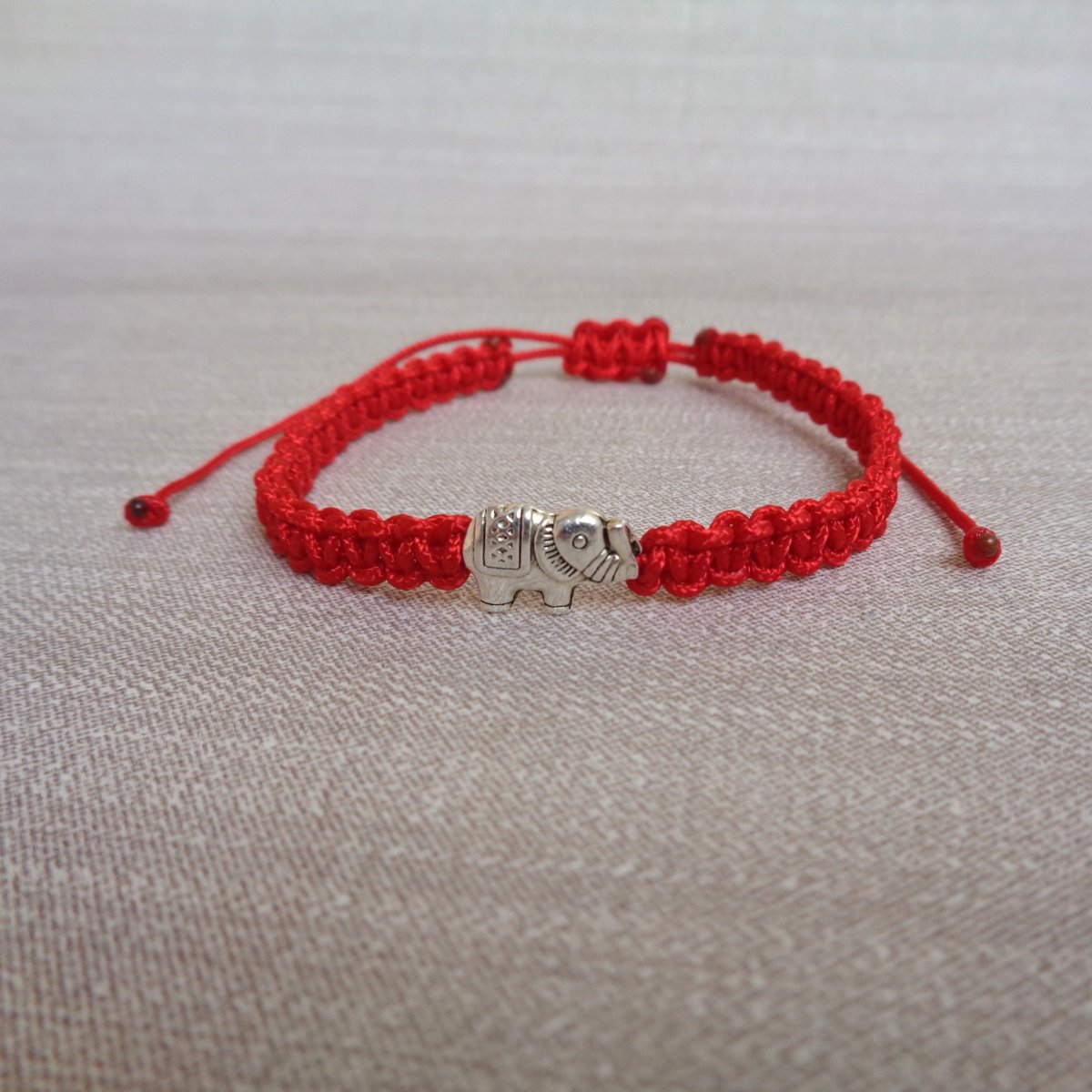 Velmi jemný, elegantní shamballa náramek z červené nylonové šňůrky a středového komponentu - sloníkem.