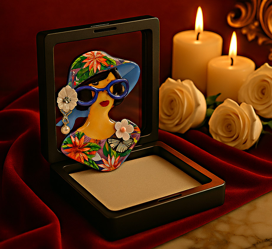 Silhouettes de Luxe – jedinečná kolekce, která spojuje eleganci minulých dekád s jemným luxusem ruční práce. Každá brož z této série je originálem inspirovaným siluetami žen v šatech, kostýmech a večerních róbách.