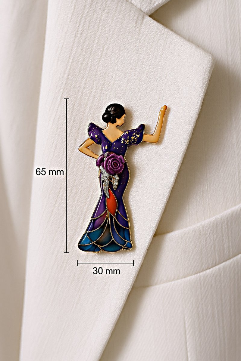 Silhouettes de Luxe – jedinečná kolekce, která spojuje eleganci minulých dekád s jemným luxusem ruční práce. Každá brož z této série je originálem inspirovaným siluetami žen v šatech, kostýmech a večerních róbách.