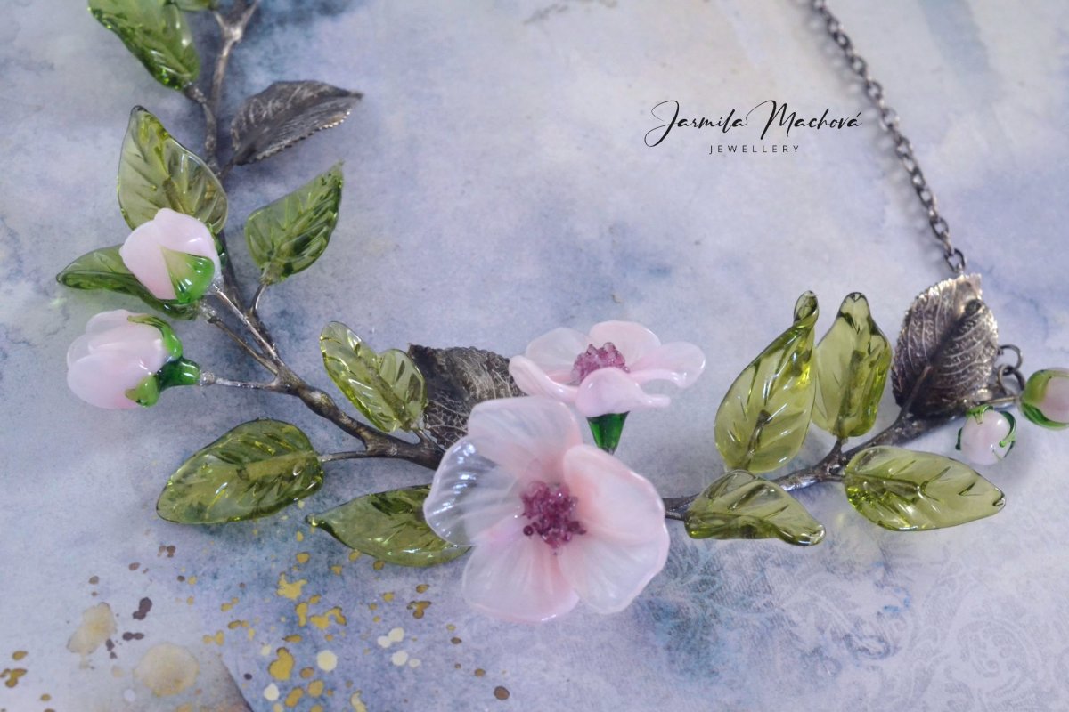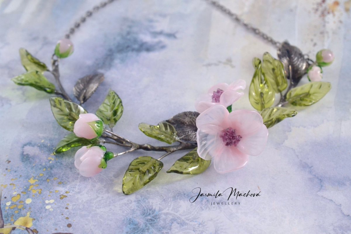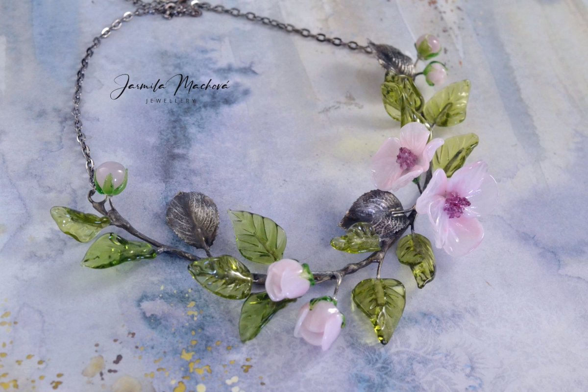 romantický náhrdelník se skleněnými květy šípkových růží....