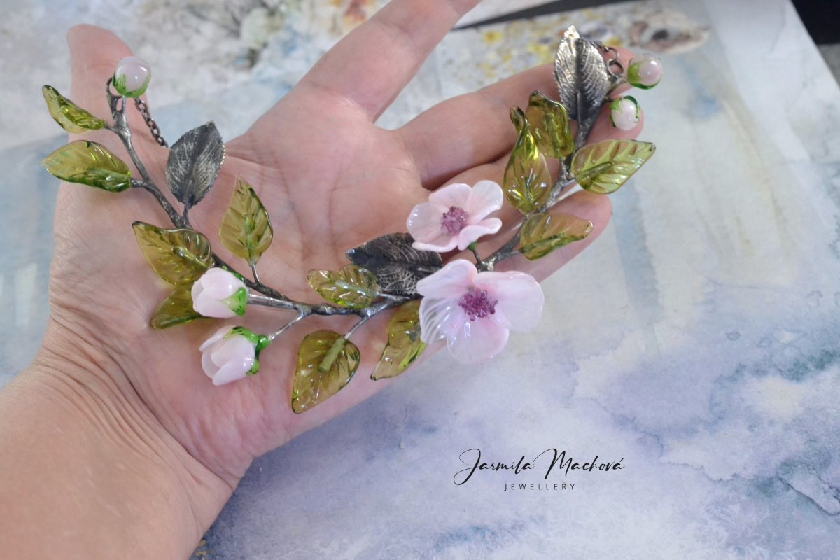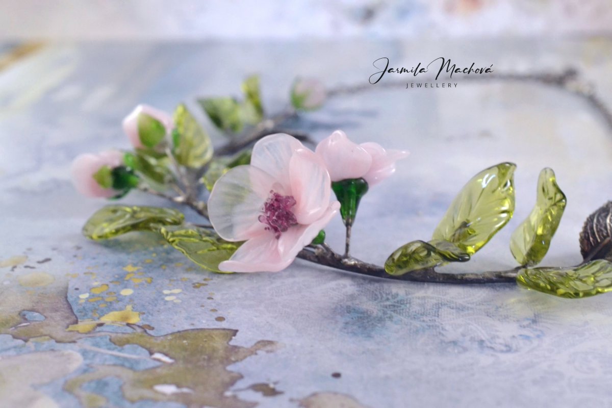 lístky a krásné růžové květy.....ručně vinuté sklo.....