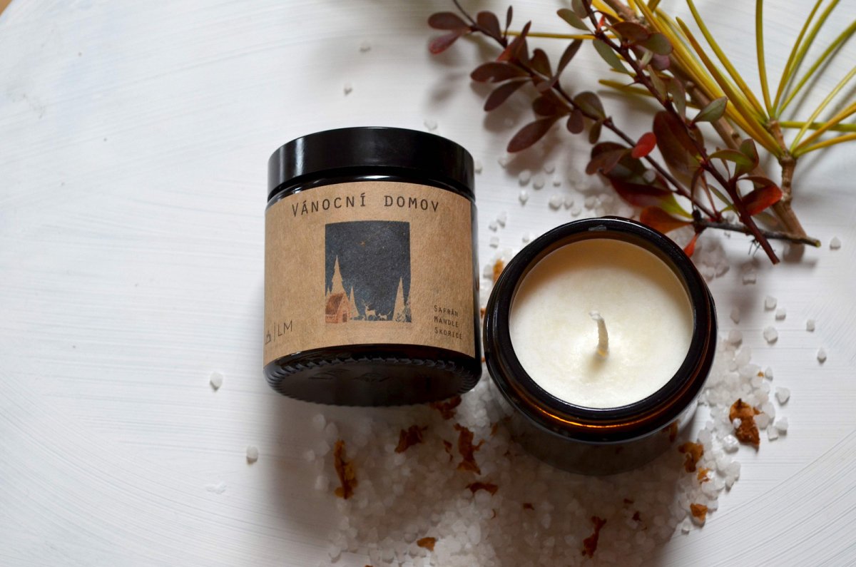 Sójová svíčka vyrobená z přírodního vosku ze sójových bobů.
