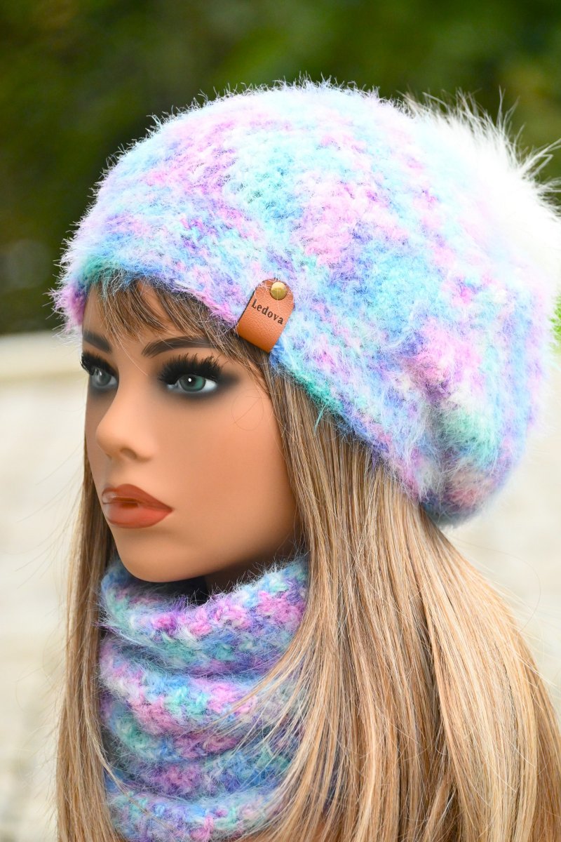 Háčkovaná souprava čepice s nákrčníkem z chlupatkové příze – hřejivý set pro zimní dny