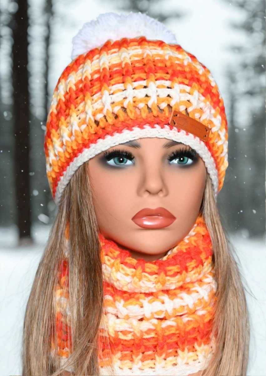 Souprava je vyrobena z kvalitní akrylové příze, která je měkká, teplá a hřejivá. Skvěle drží tvar, je příjemná na nošení a chrání před zimou i větrem.