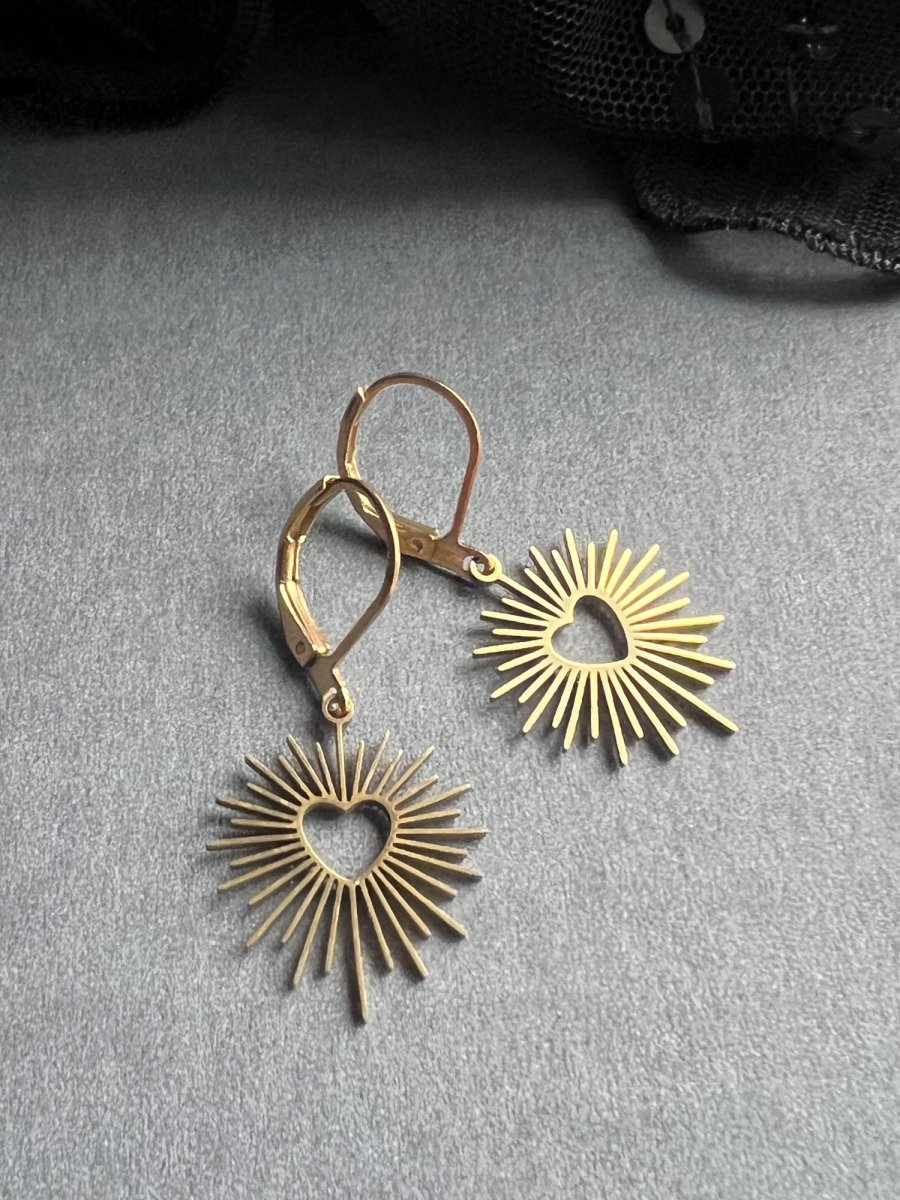 Náušnice se zlatým přívěskem cca 2 cm, komponenty z pozlacené nerez oceli - vhodné pro alergiky i pro děti. Uzavíratelný háček