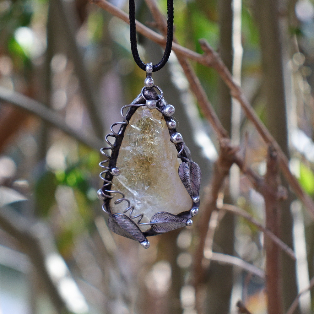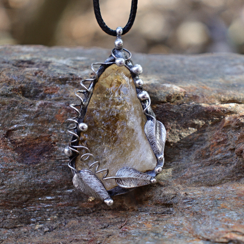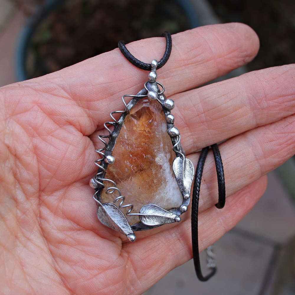 Šperk ze surového citrínu. Vyroben ručně cínováním, bez použití komponentů, z chirurgické oceli.