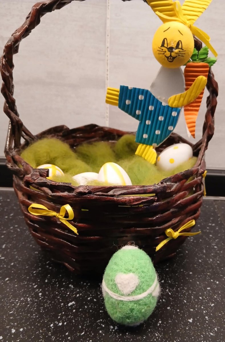 Vajíčko je uplstěno z rouna českých oveček, které jsme si nejprve několikrát vyprali, nabarvili, několikrát vyčesali a pak teprve mohlo vzniknout toto originální vajíčko, které má na zdobení po celém obvodu