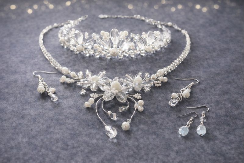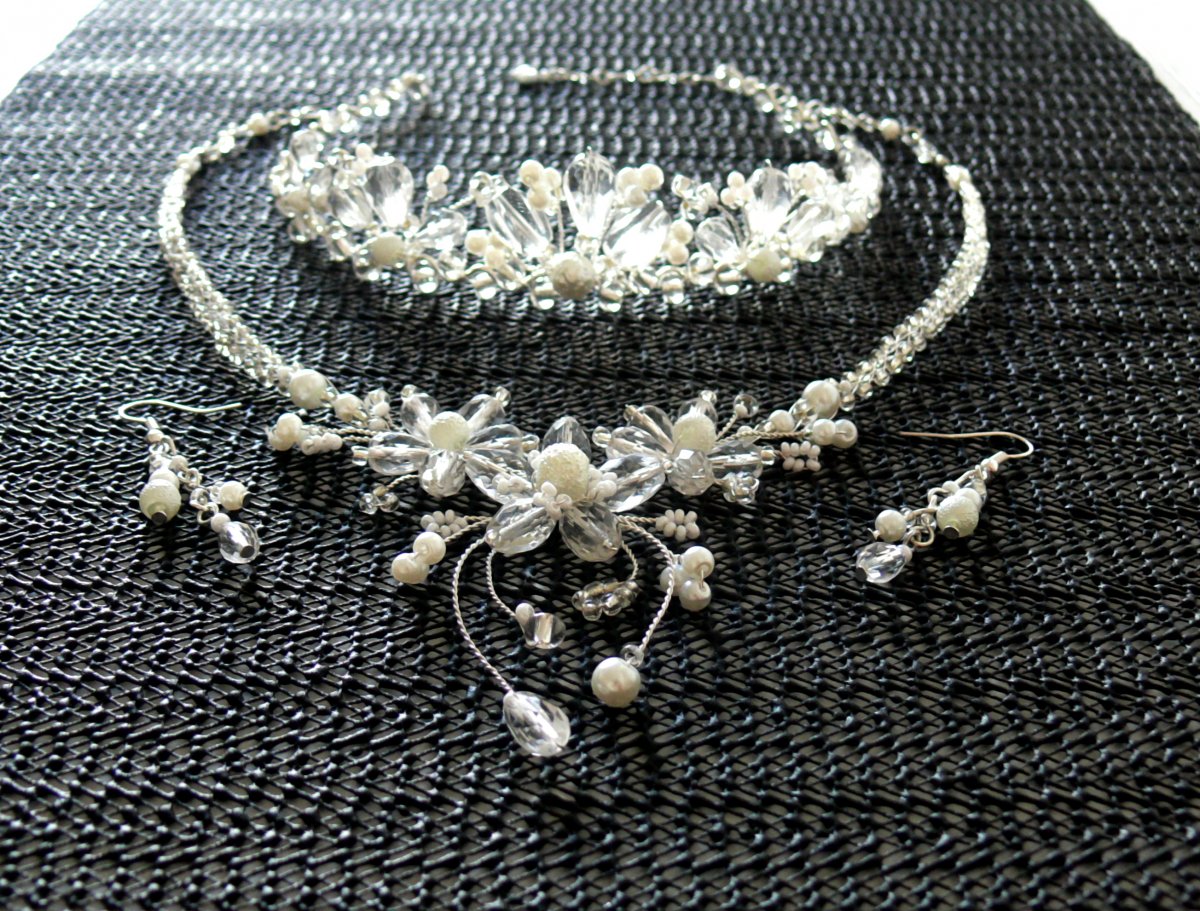 Svatební originální šperky jsou dělané z kvalitního postříbřeného drátku a korálky.