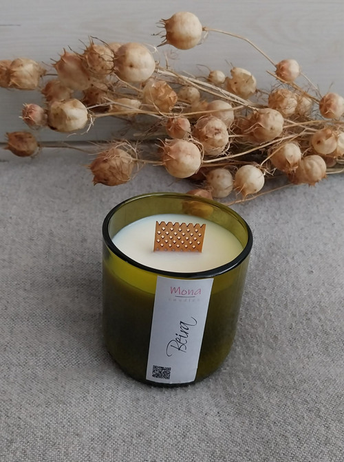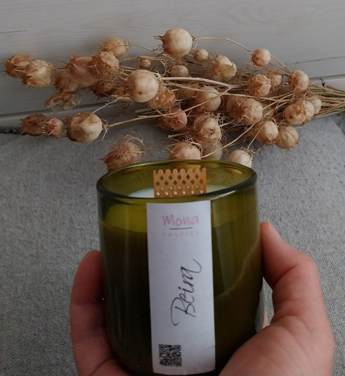 - Přírodní, ručně vyráběná sójová svíčka ve skle.