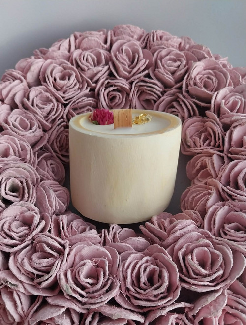 - Přírodní, ručně vyráběná sójová svíčka ve dřevě.