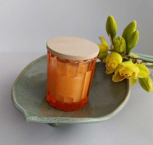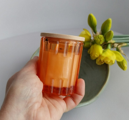 - Přírodní, ručně vyráběná sójová svíčka ve skle.