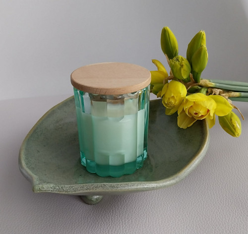 - Přírodní, ručně vyráběná sójová svíčka ve skle.