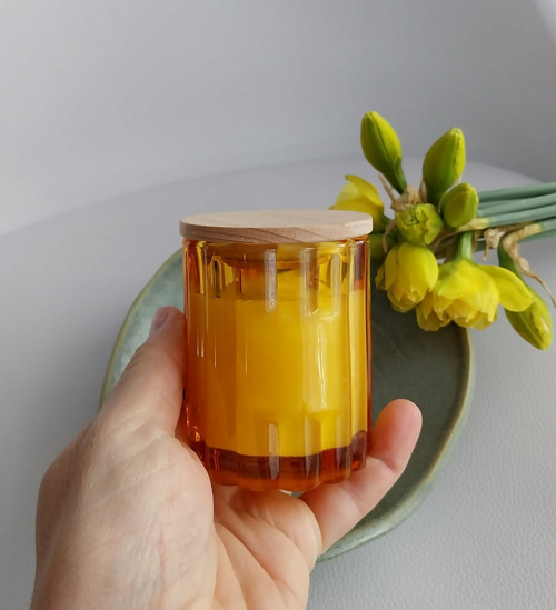 - Přírodní, ručně vyráběná sójová svíčka ve skle.
