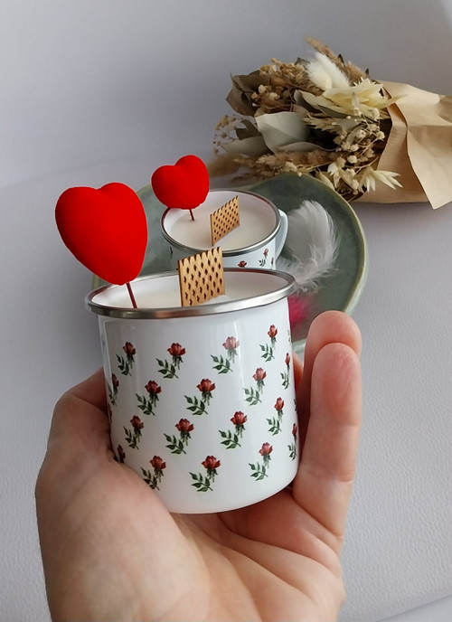 Svíčka v plecháčku, která je velmi oblíbená. Malinký hrníček, který potom zůstane na kávičku udělá radost každý den.