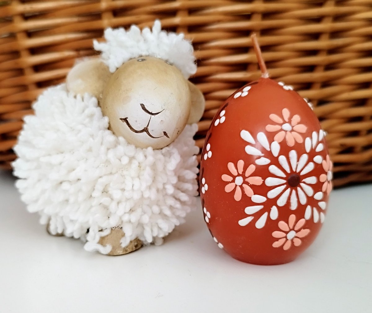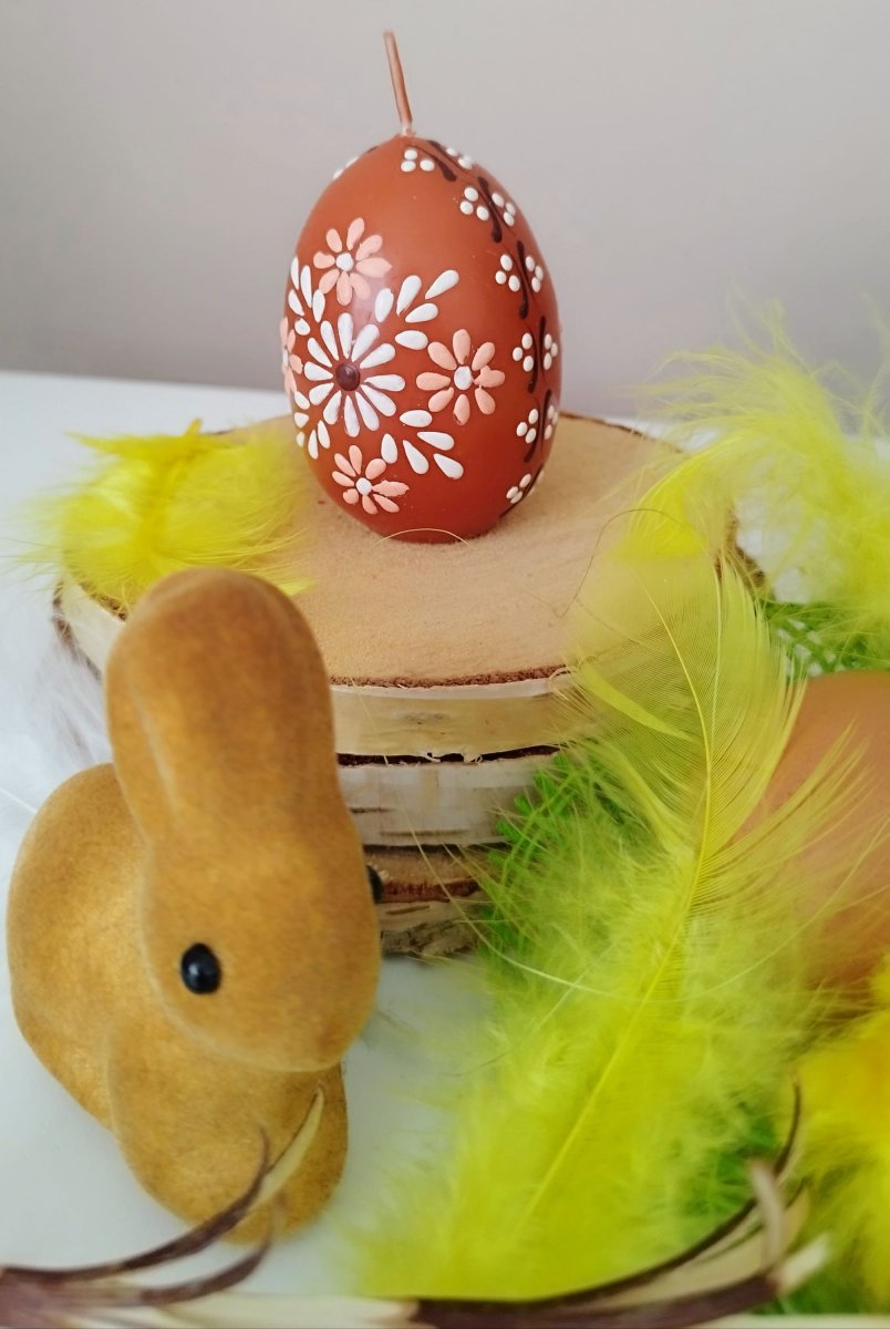 Svíčka kraslice, ručně zdobená horkým voskem, stejnou metodou, jako se zdobí klasické kraslice.