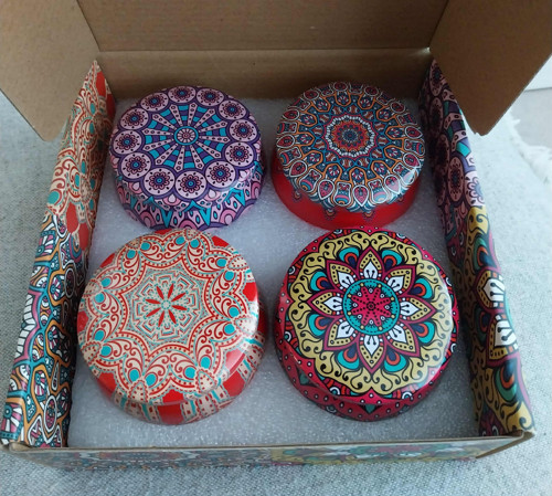 Sada svíček v hliníkovém obalu, vyrobeno pro každé roční období. Jaro voní po jarním vánku, zdobené beruškami, léto voní po ledovém vítru zdobené dřevěnými kytičkami, podzim voní po jablku/skořici zdobené sušenými květy a zima voní op white christmas zdobená dřevěným stromečkem a sušeným květem. Po vyhoření zůstanou krásné nádoby na cokoliv co Vás napadne.