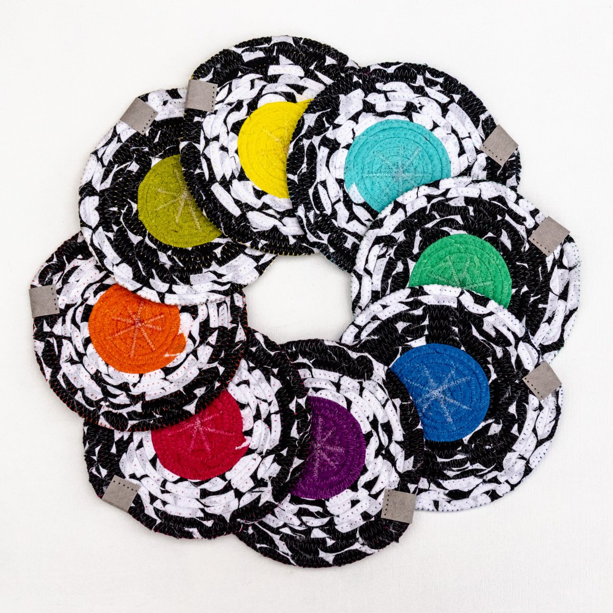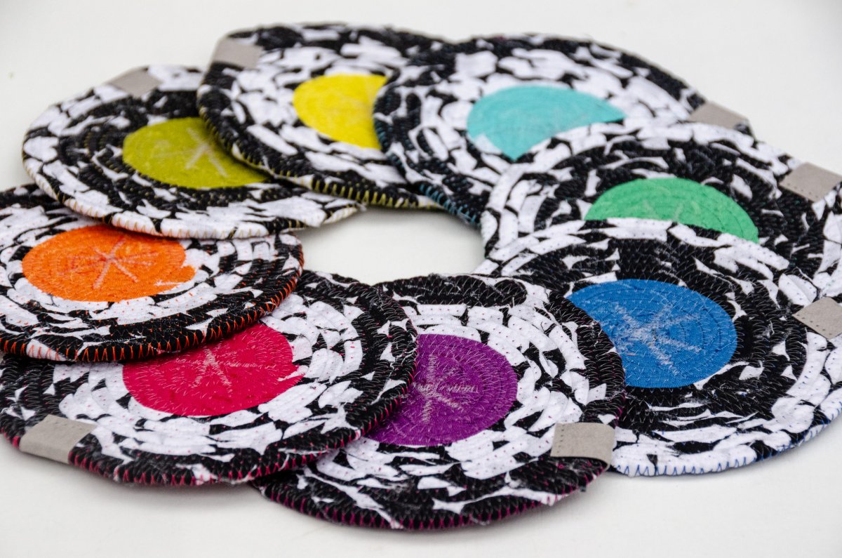 Kolečka od sklenic či hrnků vzhled vašeho stolu nijak nevylepší, naopak. Tácky ze šňůry vyrobené sešitím bavlněné šňůry, omotané různobarevnými látkami, tento problém řeší jednoduše beze zbytku...