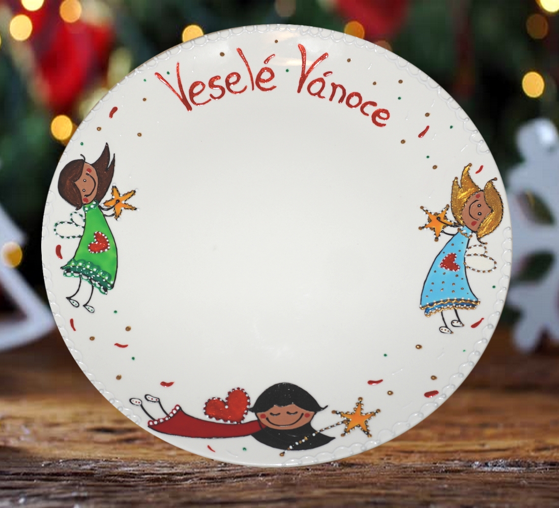 Ručně malovaný talíř velký mělký s motivem