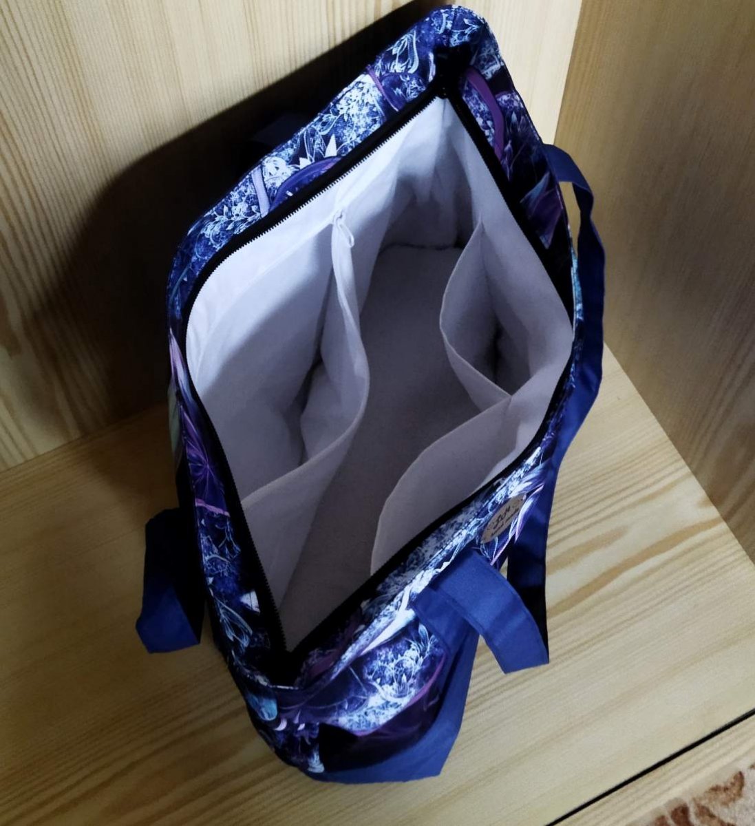 Druhá vnitřní kapsa dělená (šíře 24cm (2x12cm), hloubka 16cm) – ideální na drobnou kosmetiku, kapesníky, brýle nebo psací potřeby.