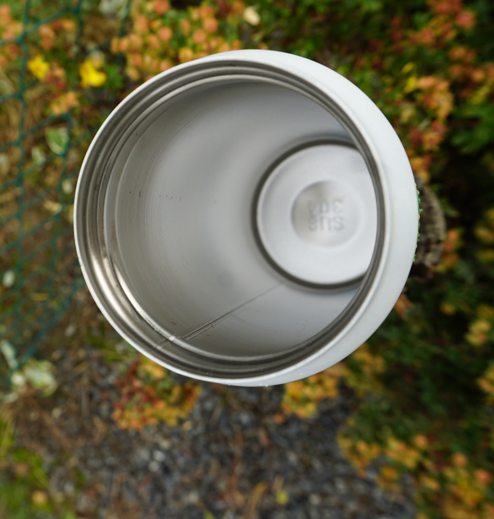 na láhvi jsou nápisy bílou konturou čaj a kafe