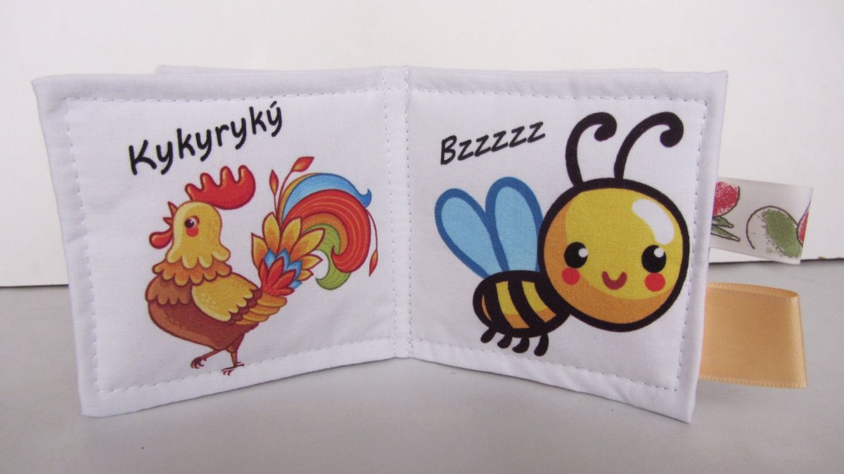 Textilní knížka udělá radost vašim dětičkám a zabaví je na chvíle vašeho odpočinku. Knížka je ušitá z bavlněné látky s atestem pro děti do tří let věku dítěte. Kniha je vyztužena vlizelínem, vyplněná rounem. Ze strany jsou všité stužky na kterých si dětičky cvičí jemnou motoriku a plastové kousátko . Velikost obrázků je 9 x 10 cm.