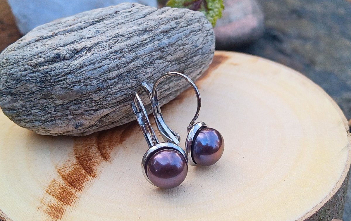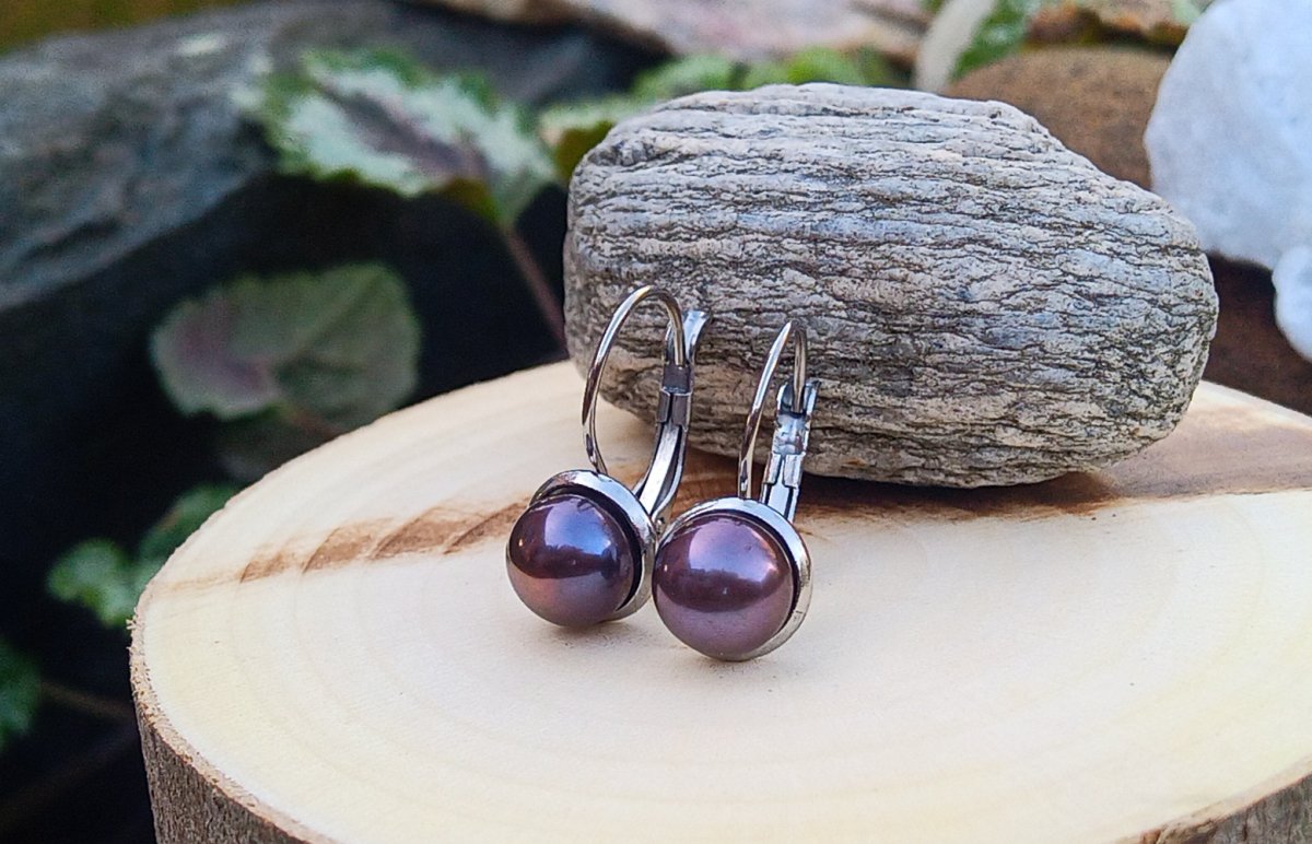 Elegantní náušnice s dokonale lesklými mořskými antracitovými perlami o průměru 8 mm s krásnými duhovými odlesky vloženými do zavíracích háčků z leštěné chirurgické oceli - hypoalergenní, vhodné i pro alergiky.