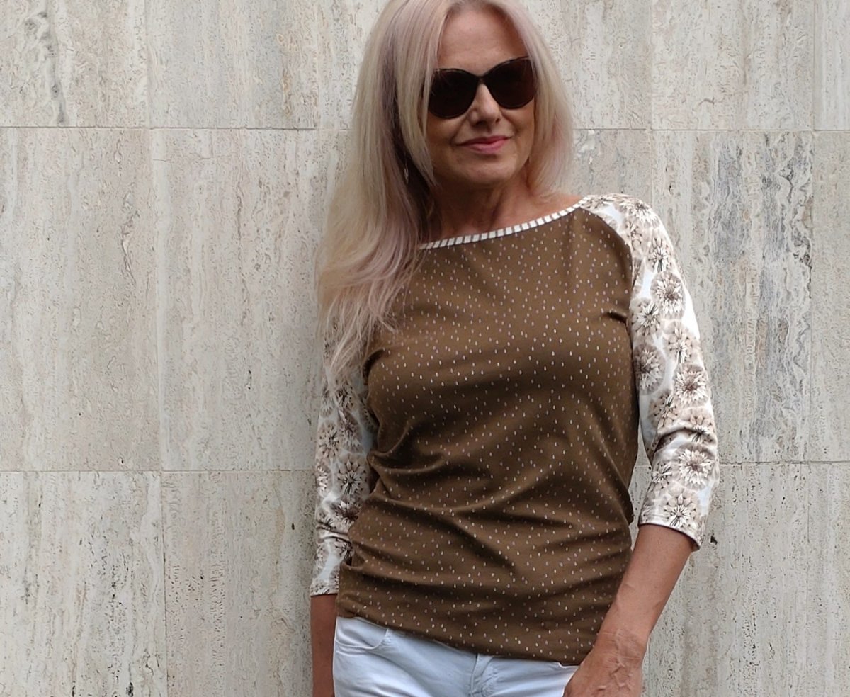 Raglánové tričko z elastického úpletu ve složení bavlna s lycrou. Kombinace vzájemně ladících potisků.