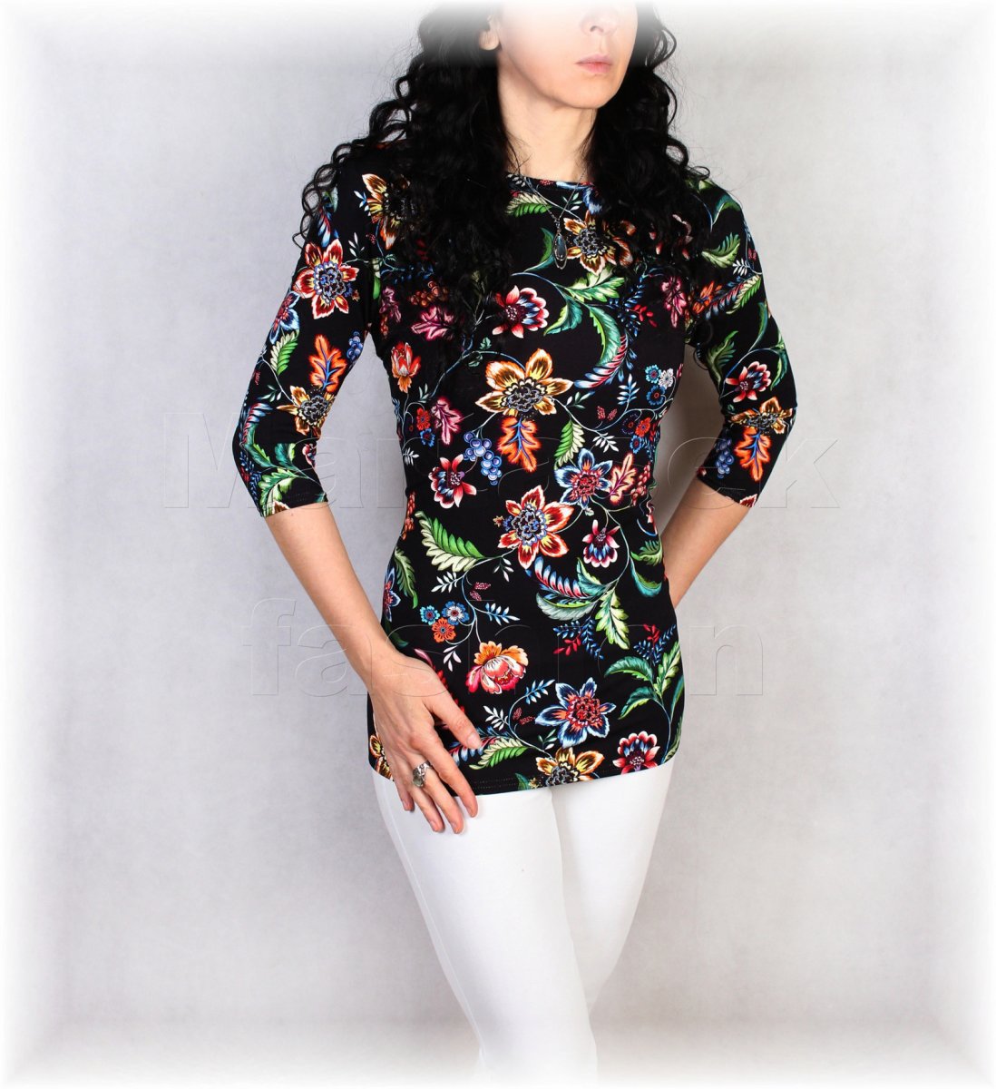 Velikosti 36-44 nafocené triko je ve větší velikosti a na postavě volnější