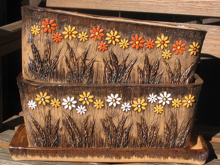 UPOZORNĚNÍ: počet, rozmístění střídání barev kytiček je zcela náhodné, truhlíky se liší v detailech = ruční práce